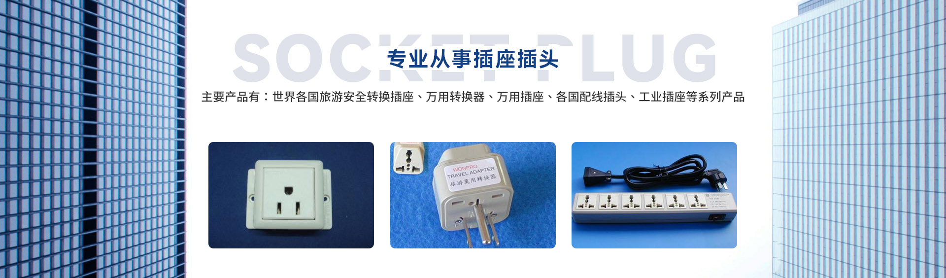 ◆ 主要產品有:世界各國旅游安全轉換插座、萬用轉換器、萬用插座、各國配線插頭、工業插座等系列產品。